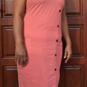 Plain Linen Dress – Salmon Pink